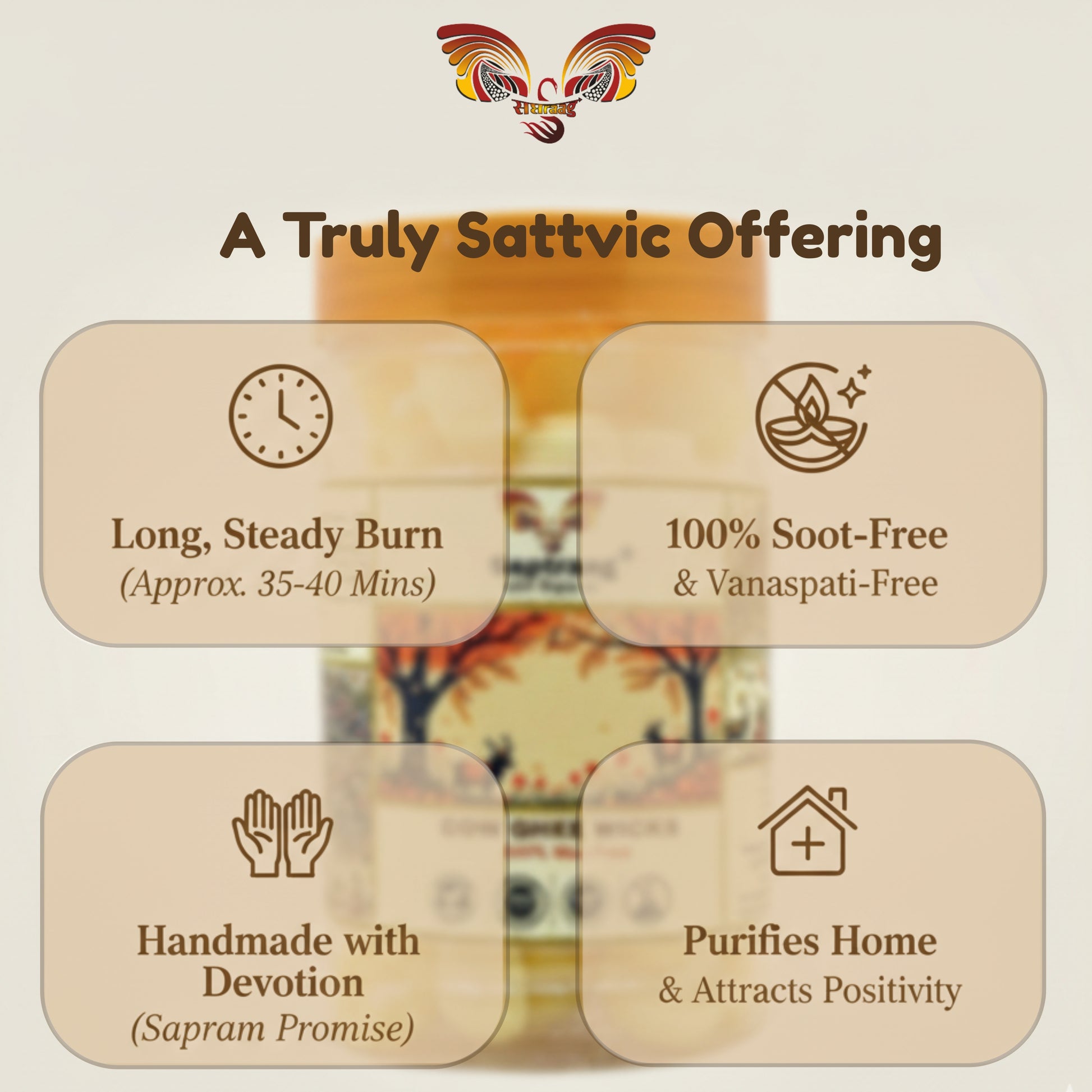 Saptraag 100% Pure Cow Ghee Batti (100 Pcs) | 100% Wax-Free & Soot-Free | Ready to Light Diya Wicks