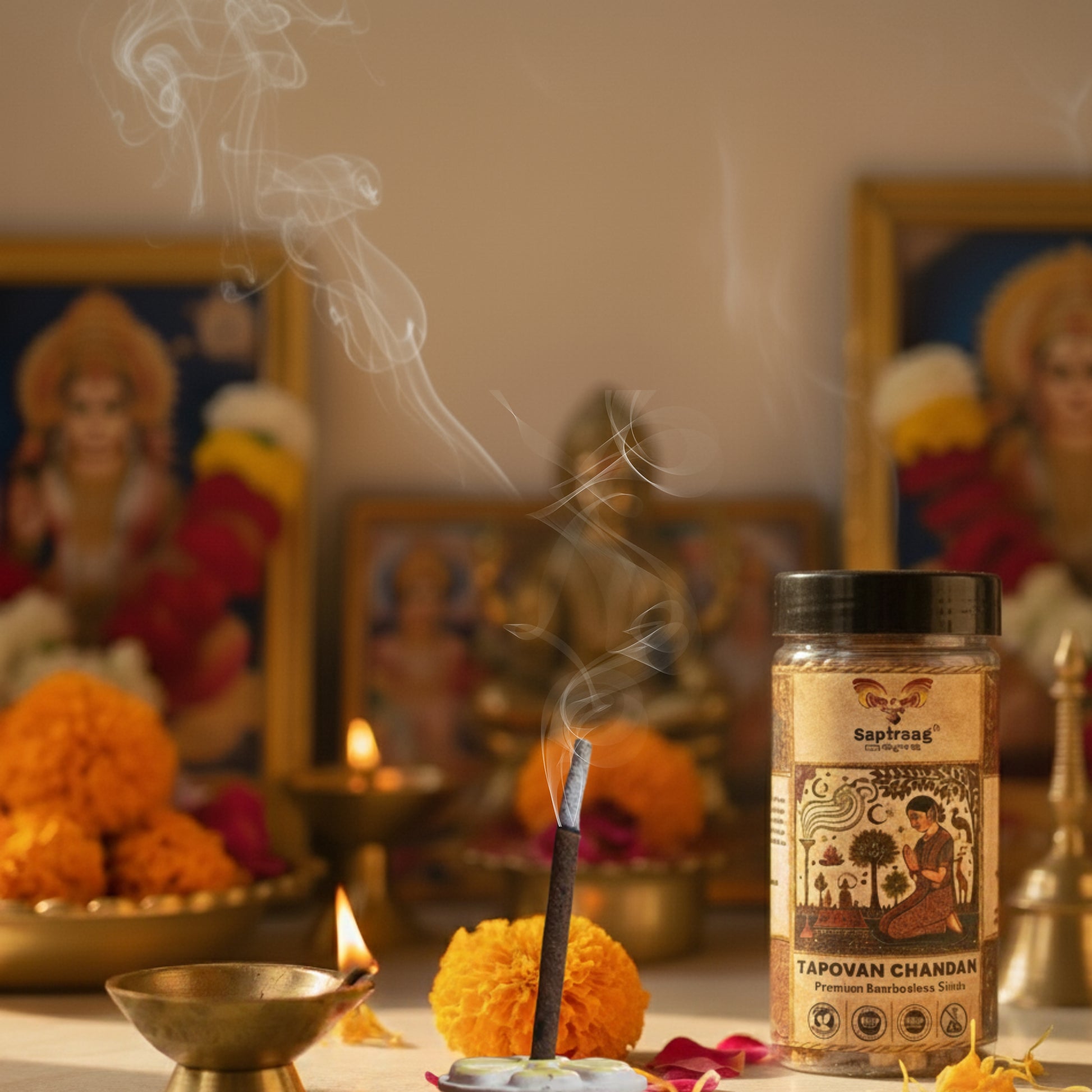 We saw a market forcing devotees to choose between dharma (no bamboo) and convenience, and between purity (real chandan) and price (fake oils). Saptraag was created to end this compromise.
